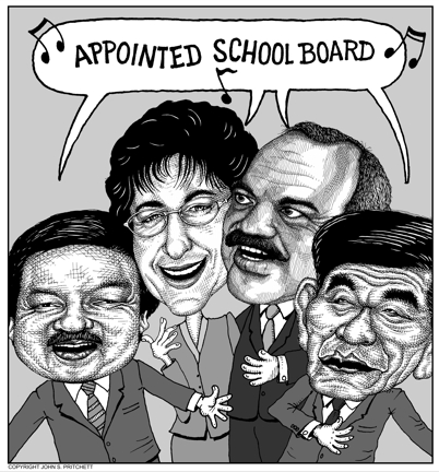 Honolulu Weekly 2-24-10 Hawaii governors sing in harmony for appointed school board. Next Cartoon | Previous Cartoon | 2010 | Archives | Home | Search