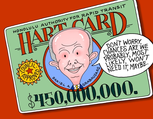 Hawaii Reporter 6-8-12 HART gets $450 million credit card, Grabauskas says they won't use it. Next Cartoon | Previous Cartoon | 2010 | 2011 | 2012 | Home | Search