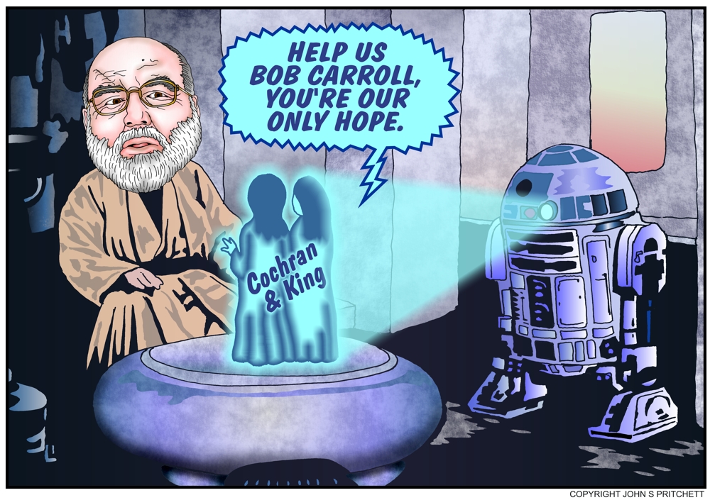 Maui County Council members Cochran and King ask for help from councilmenber Bob Carroll. Back to Maui Watch Pritchett Cartoon Archive | To comment, Email Pritchett | Home Page