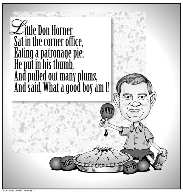 Honolulu Weekly 6-8-11 Don Horner pulls out many plums from patronage pie. Next Cartoon | Previous Cartoon | 2011 | Archives | Home | Search