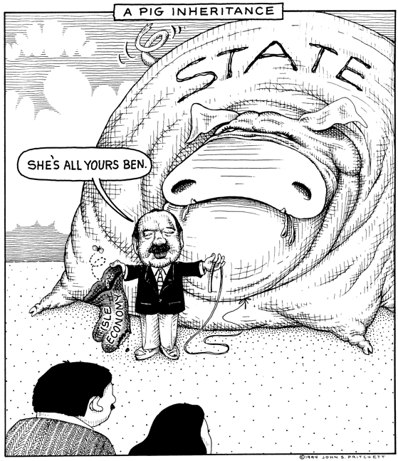 Honolulu Weekly 1-4-95 Hawaii Governor elect Ben Cayetano inherits state debt, bad economy. Next Cartoon | Previous Cartoon | 1995 | Archives | Home | Search