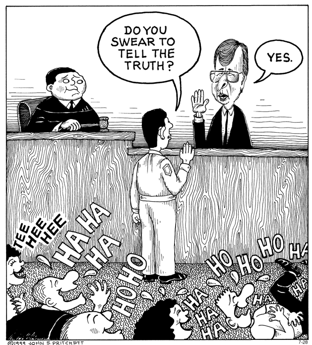 | The citizens group opposing Jeremy's plan to fully restore the Natatorium, the Kaimana Beach Coalition, argued that because the city cannot get a permit for the saltwater pool, it would be unwise to begin construction. When subpoenaed to testify, Jeremy tried everything he could to weasel out of a court appearance, but finally showed up. At the time of this writing, the city has spent $4 million to restore the façade and two bathrooms at the Natatorium. The bleachers and pool remain derelict and fenced off to the public, waiting for a permit that may never come. Honolulu Weekly cartoon 7-28-1999 |