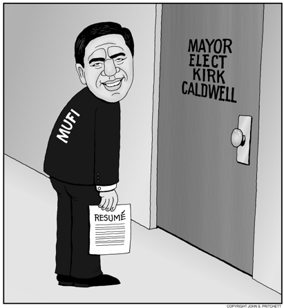 Honolulu Weekly 11-14-12 Mufi Hannemann looking for a job. Next Cartoon | Previous Cartoon | 2012 | Archives | Home | Search