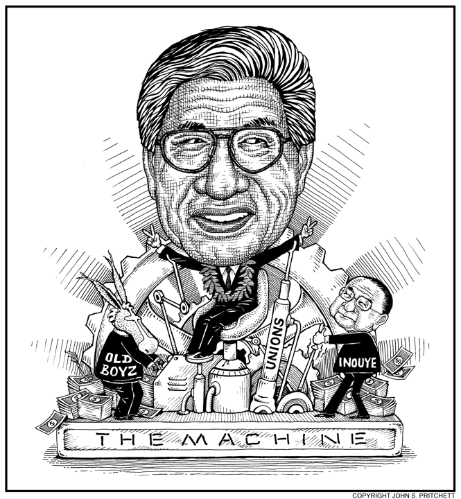Honolulu Weekly 8-16-06 Dan Akaka reelection supported by Hawaii Democrat Machine Next Cartoon | Previous Cartoon | 2006 | Archives | Home | Search