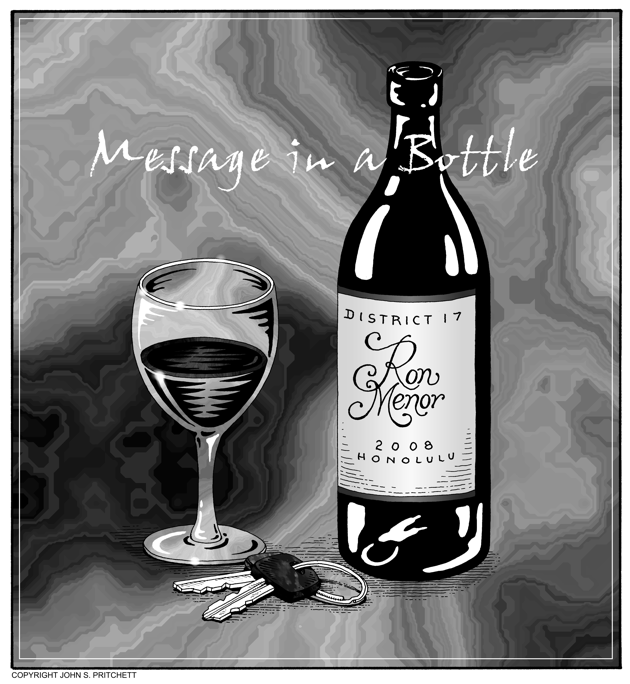 Honolulu Weekly 4-30-08 Hawaii State Senator Ron Menor arrested for DUI. Next Cartoon | Previous Cartoon | 2008 | Archives | Home | Search