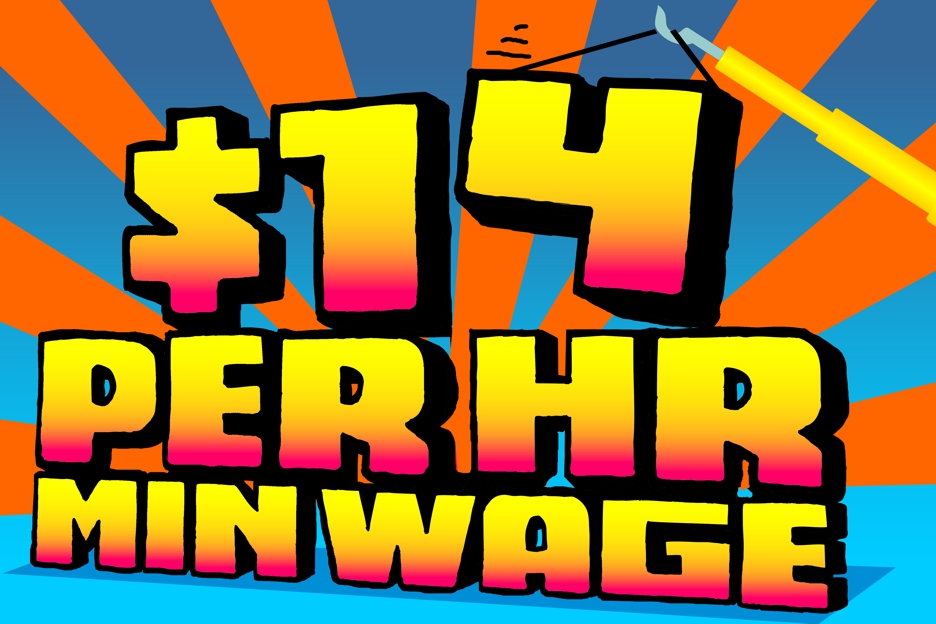 Hawaii minimun wage goes up to $14.00 per hour. Pritchett Cartoon for Honolulu Civil Beat, January 7, 2024 | To comment, Email Pritchett Next Cartoon | Previous Cartoon | Civil Beat Pritchett Cartoon Archives | Home Page