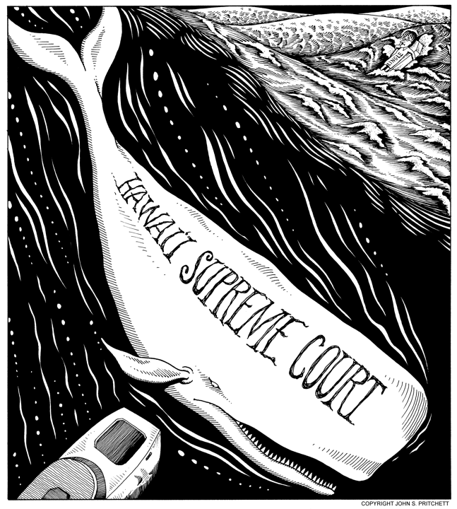 Honolulu Weekly 3-18-09 Hawaii Superferry scuttled by great white whale - Hawaii Supreme Court. Next Cartoon | Previous Cartoon | 2009 | Archives | Home | Search