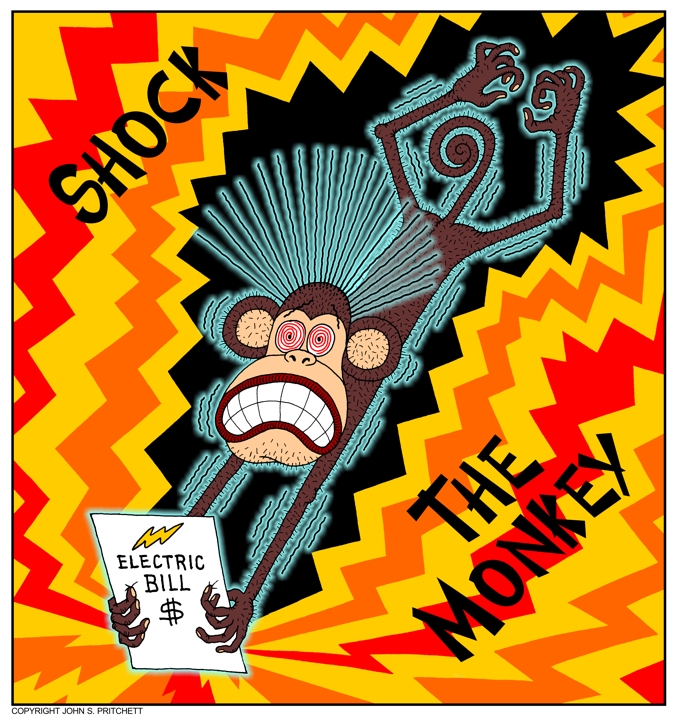 Shock the monkey with high electric bill. For details on reprint usage or to purchase original art Email Pritchett Business Cartoons | Site Map | Home Page
