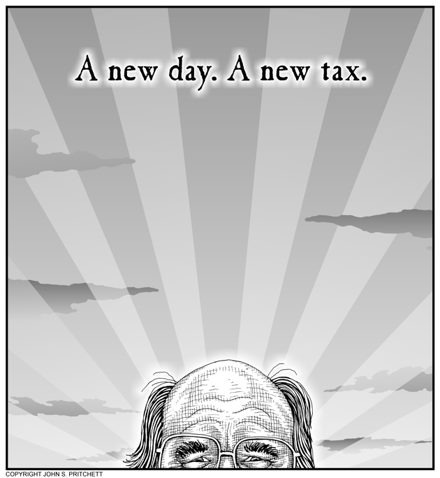 Honolulu Weekly 3-30-11 Hawaii Governor Neil Abercrombie heralds a new day and a new tax. Next Cartoon | Previous Cartoon | 2011 | Archives | Home | Search