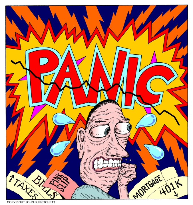 Panic Attack For details on reprint usage or to purchase the original art, Email Pritchett Business Cartoons | Site Map | Home Page