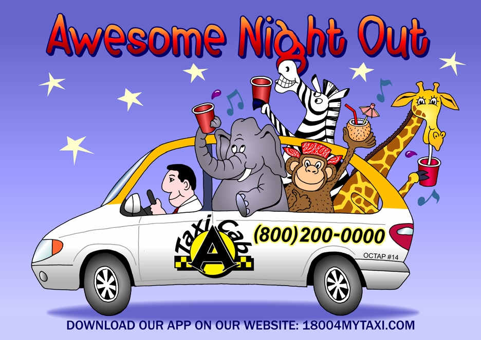 Cartoon for Orange Counnty Taxi Service. Drinking allowed. To comment, please Email Pritchett Color Illustrations | Site Map | Home Page