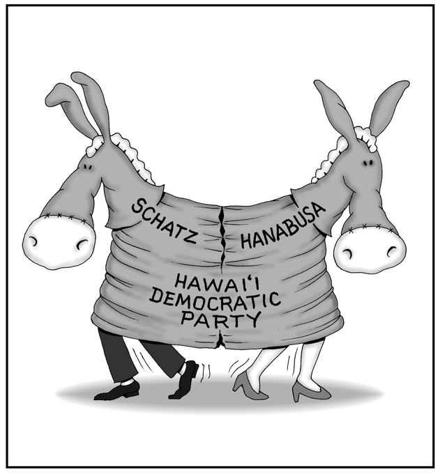 Honolulu Weekly 5-8-13 Hanabusa, Schatz split Democratic Party with U.S. Senate challenge. Next Cartoon | Previous Cartoon | 2013 | Archives | Home | Search