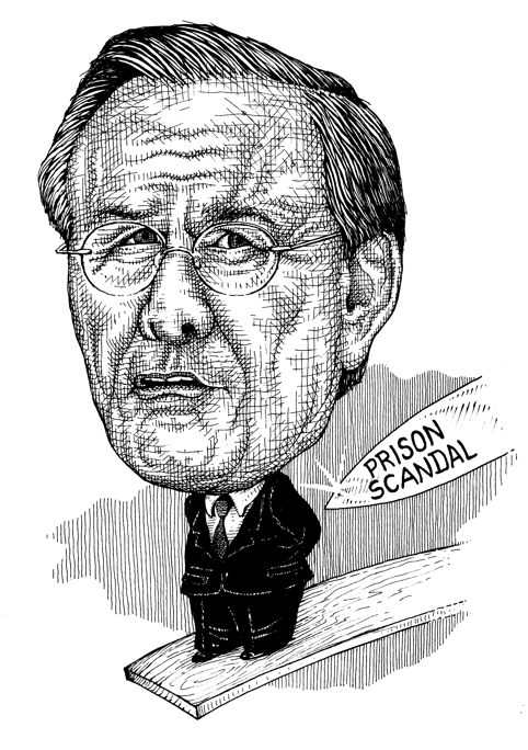 Honolulu Weekly 5-26-04 Secretary of Defense Rumsfeld walks the plank after allegations of prisoner abuse at Abu Ghraib. Next Cartoon | Previous Cartoon | 2004 | Archives | Home | Search