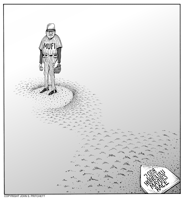Honolulu Weekly 7-18-07 Who will step up to the plate in 2008 Honolulu Mayor's race? Next Cartoon | Previous Cartoon | 2007 | Archives | Home | Search