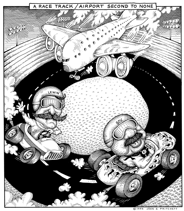 Honolulu Weekly 1-5-94 Health Director Jack Lewin denied he had to go to race track to talk with governor. Next Cartoon | Previous Cartoon | 1994 | Archives | Home | Search