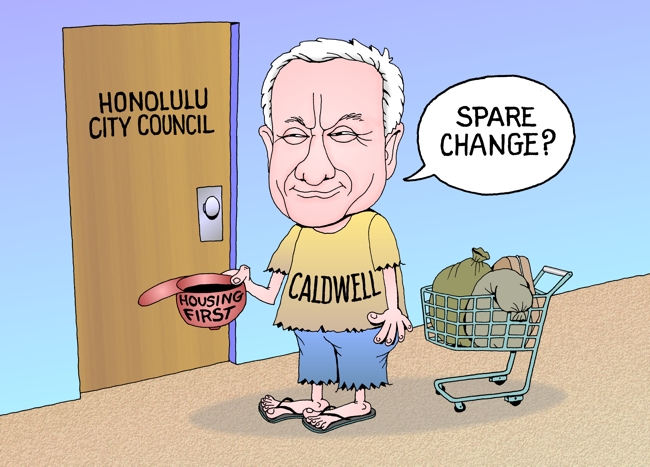 Honolulu Mayor Kirk Caldwell begs for "Housing First" homeless program.