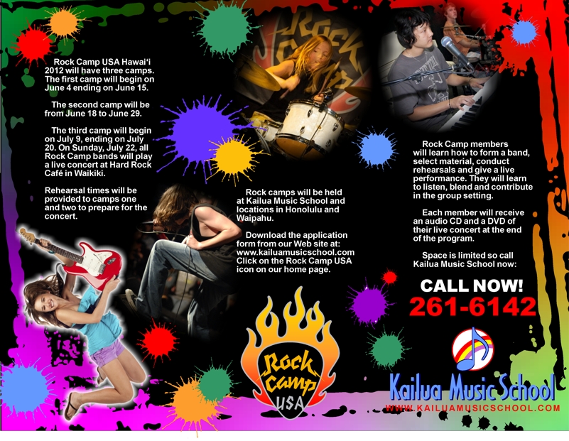 Brochure for Kailua Music School Rock Camp USA 2012