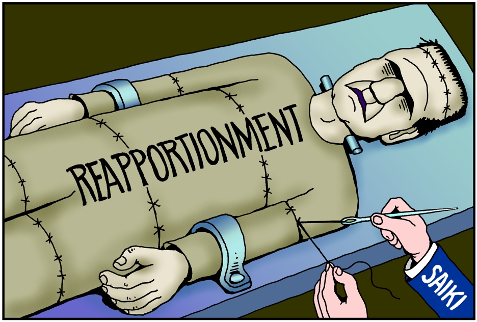 Hawaii House Speaker Scot Saiki stitches together reapportionment monster.