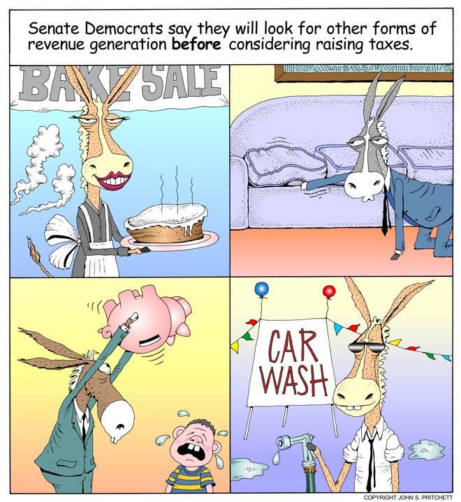 Democrats look for other sources of revenue before raising taxes. For details on usage or to purchase original art Email Pritchett Tax Cartoons | Home Page | Site Map
