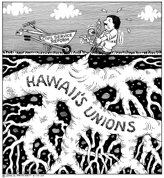 First place award, editorial cartoon 2000, Hawaii Publishers Association, for Honolulu Weekly Awards | Home Page | Site Map | Search | Email
