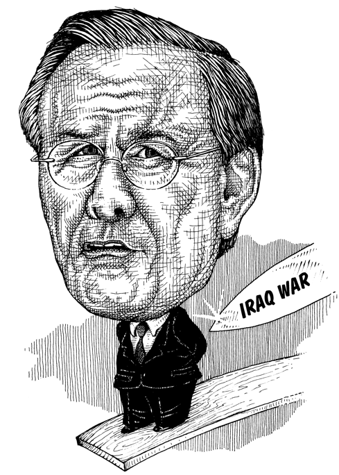 Donald Rumsfeld 1932-2021For details on usage Email Pritchett | See it in Color Caricatures | Site Map | Home Page