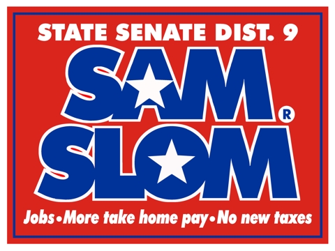 Campaign sign for Sam Slom, graphic design by John Pritchett See Banner | Logos Page | Home Page | Site Map | Email Pritchett