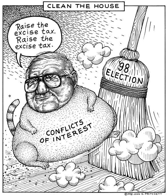 Honolulu Weekly 8-3-98 Joe Souki House Cleaning - Sweep Souki out in 1998. Next Cartoon | Previous Cartoon | 1998 | Archives | Home | Search