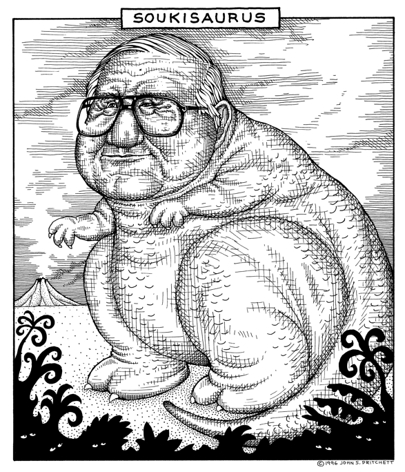 Honolulu Weekly 12-11-96 Long-time lawmaker Joe Souki is dinosaur. Next Cartoon | Previous Cartoon | 1996 | Archives | Home | Search