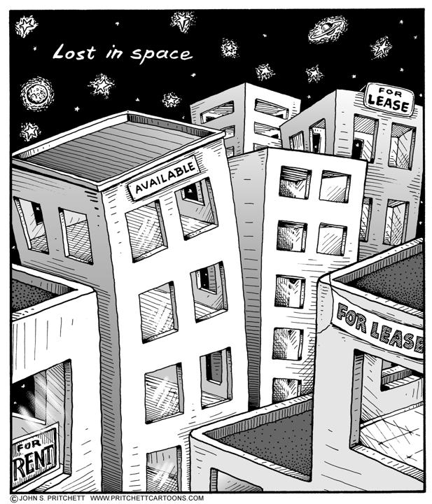 "Lost in Office Space." Real estate cartoon For details on reprint usage or to purchase original art, Email Pritchett Business Cartoons | Site Map | Home Page | Search