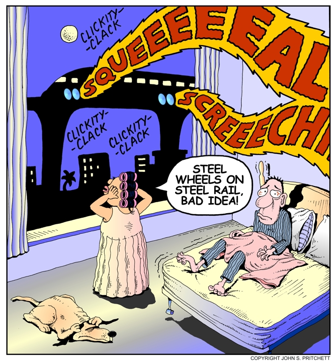 Steel Wheels on Steel Rails, Rail Transit Noise Pollution For details on usage Email Pritchett Transportation Cartoons | Site Map | Home Page