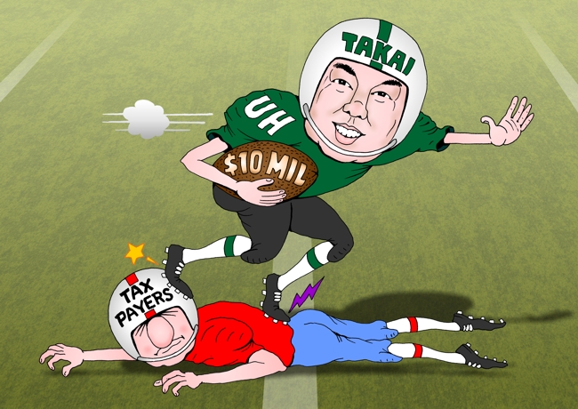Mark Takai is Hawaii's Ten Million Dollar Man. Pritchett Cartoon for Honolulu Civil Beat, January 10, 2014 | To comment, Email Pritchett Next Cartoon | Previous Cartoon | Civil Beat Pritchett Cartoon Archives | Home Page
