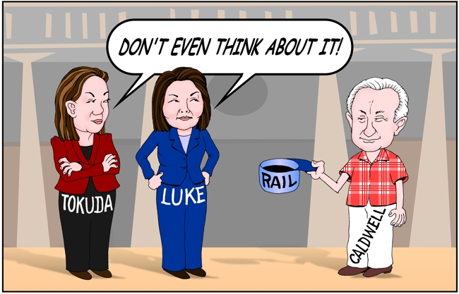 State money chairs Tokuda, Luke warn Caldwell on future rail money legislation.