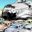 Cartoons about transportation, automobiles, traffic, bad roads, potholes the airline industry, trains, busses, planes, bicycles, pedestrians and more by editorial cartoonist John S. Pritchett.