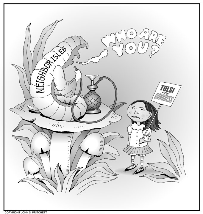 Honolulu Weekly 11-2-11 Tulsi Gabbard runs for Congress but lacks name recognition. Next Cartoon | Previous Cartoon | 2011 | Archives | Home | Search
