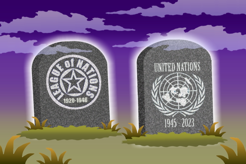 United Nations shift to leftism, antisemitism may follow demise of League of Nations. For details on usage, please Email Pritchett Cartoon Archives | Site Map | Home Page
