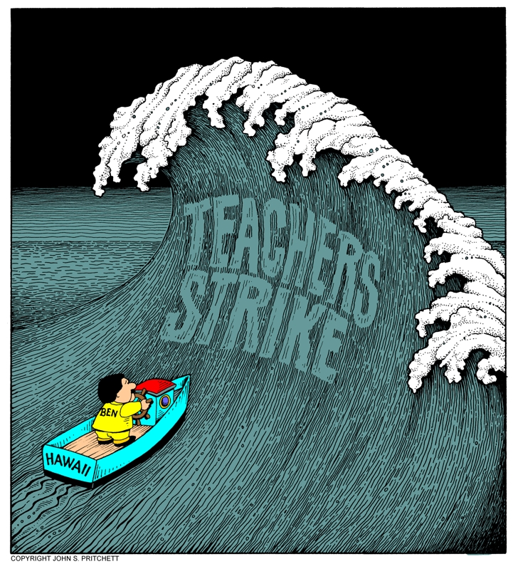 Hawaii Governor Ben Cayetano faces looming teacher's strike. Next Cartoon | Previous Cartoon | Adventures of Ben | Home | Email Pritchett
